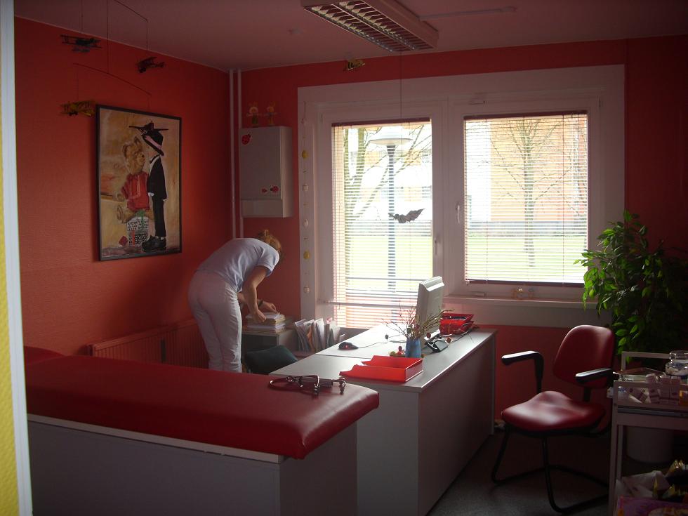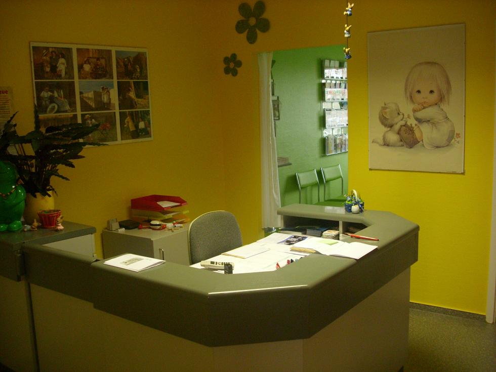 Unser rotes Sprechzimmer -unsere Steffi beim Akten sortieren
